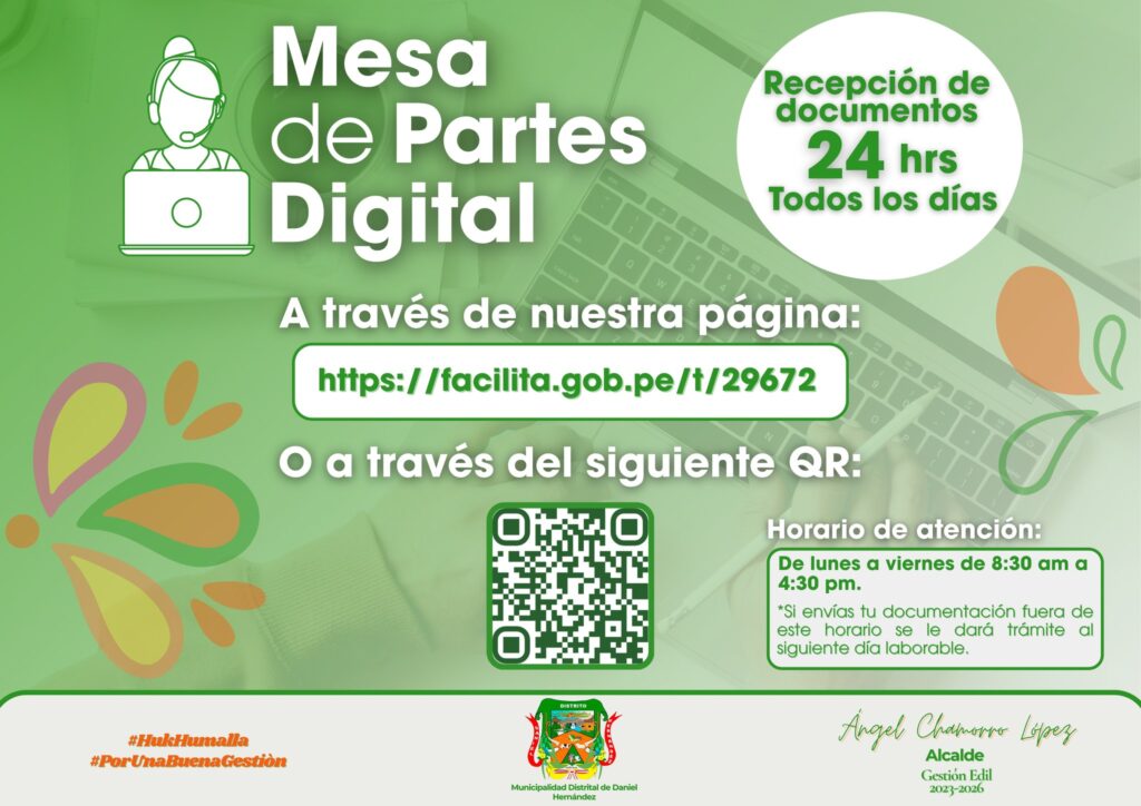 Para todos sus procedimientos administrativos, puede dirigirse a la Municipalidad Distrital de Daniel Hernandez en la dirección y horarios indicados en esta página, o contactar a la alcaldía ayuntamiento por teléfono o por correo electrónico según su preferencia y datos disponibles.